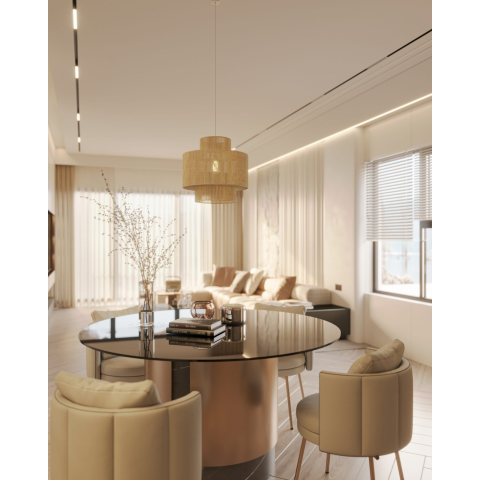 A LABRIZ egy klasszikus boho stílusú lámpa, amely három, eltérő méretű hengerből álló, hagyományos formájú lámpaernyővel rendelkezik. Nyitott szerkezetű, papírkötélből font burkolata meleg bézs árnyalatú, így tökéletesen illik skandináv és rusztikus enter..