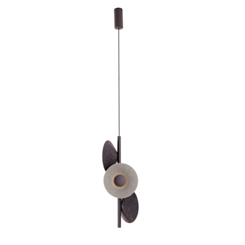 A PURO függesztett lámpa filc lámpaernyője kör alakú vázra épül, formája egy nyíló virágot idéz. Természetes megjelenésével különleges dekorációként szolgál, tökéletesen illik modern, minimalista, skandináv és mid-century enteriőrökbe. Lágyan szórja a fén..