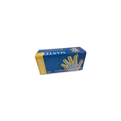 1 kép Maxter hosszúszárú (290mm) nitril púdermentes vizsgálókesztyű (5,7 g) - 100 db - Kék - M