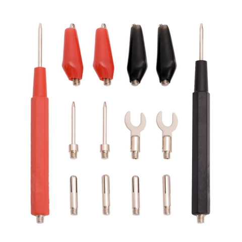 2 db mérővezetéket tartalmaz, melynek egyik vége banándugó, a másikhoz pedig csavarosan rögzíthetőek a tartozékok