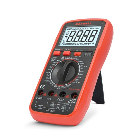 MAXWELL 25301 Digitális multiméter True RMS Általános multiméter, jelalak független „True RMS” méréssel. Háttérvilágítással ellátott kijelző és beépített fáziskereső segíti a mérési feladatok elvégzését. Strapabíró készülékház és felépítés jellemzi a 3