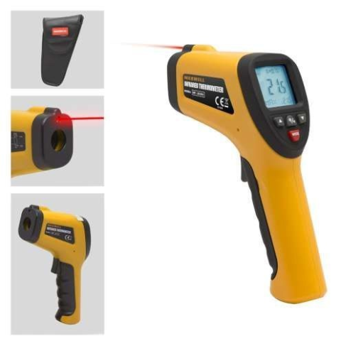Infravörös hőmérsékletmérő műszer lézer irányzékkal. Általános hőmérsékletmérési feladatokhoz ideális ha nehezen megközelíthető a mérendő felület. Használatával elkerülhetőek az égési sérülések mérés közben. Könnyű és ergonomikus kialakítású készülékház.