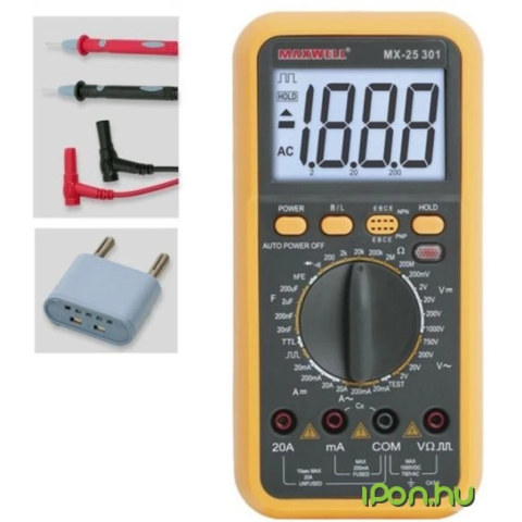Digitális multiméter (TRUE RMS) - Fáziskereséssel Általános multiméter, TTL áramkörök tesztelésére és vizsgálatára is alkalmas, hőmérséklet- és frekvenciaméréssel kiegészítve. A jelalak független „True RMS” mérés, a háttérvilágítással ellátott kijelző