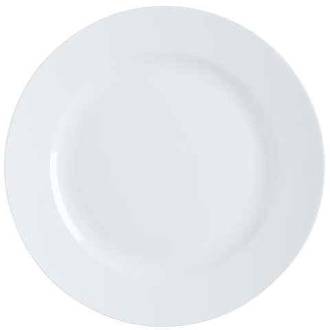 Tányérkészlet - porcelán tányérok, fehér kivitel, mosogatógépbe és mikrohullámú sütőbe helyezhető, univerzális, kerek alakú, klasszikus dizájn, tányér mérete 23 cm × 23 (Sz×H), tartalma 4 lapos tányér