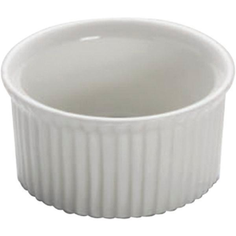 Fehér porcelán kerek sütőtálka Maxwell & Williams Basic, 60 ml űrtartalommal és 6,5 cm átmérővel. Mosogatógépben, fagyasztóban és mikrohullámú sütőben is használható. Ideális kis adagok vagy desszertek elkészítéséhez.