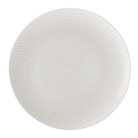 Tányérkészlet - porcelán tányérok, fehér kivitel, mosogatógépbe és mikrohullámú sütőbe helyezhető, univerzális, kerek alakú, klasszikus dizájn, geometriai motívum, tányér mérete 23 cm × 23 (Sz×H), tartalma 6 desszert tányér