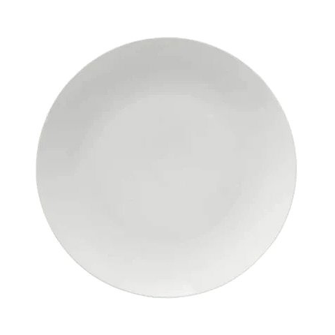 Tányérkészlet - porcelán tányérok, fehér kivitel, mosogatógépbe és mikrohullámú sütőbe helyezhető, univerzális, kerek alakú, klasszikus dizájn, tányér mérete 27,5 cm × 27,5 (Sz×H), tartalma 4 lapos tányér