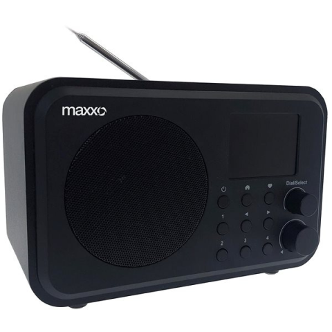 Rádió - internetes, hordozható (füllel / kompakt), DAB+, FM és RDS tuner 80 előre beállítható csatorna, 3 W teljesítmény, 3,5 mm Jack kimenet, automatikus hangolás és automatikus kikapcsolás, Bluetooth, DLNA és Wi-Fi, ébresztőóra, kijelző és óra, távvezérlés a csomag része, elemes tápellátás, beépített elem, klasszikus design, mérete 114 × 190 × 100 mm (Ma×Sz×Mé), tömege 0,8 kg, fekete kivitel This Maxxo DAB+ Internet Radio - DT02 radio is an easy to carry, h