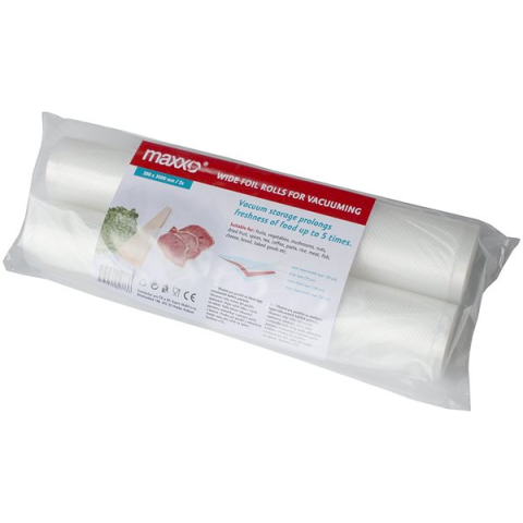Vákuumfólia - Maxxo márkájú vákuumozóval kompatibilis, méretei 300 × 28 cm (h × szé), főzéshez, fagyasztható, mikrohullámú sütőben használható és többször használható, 2 darab a csomagban A MAXXO vákuumos zacskók rendkívül erősek és strapabíróak, és erős bordázattal rendelkeznek, amelyek elősegítik a tökéletes levegőelszívást, valamint a hermetikus lezárást. Speciális, ellenálló a