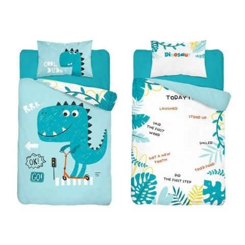 1 kép Maya Moo Gyerek Bambusz ágyneműhuzat 90x120cm - Dinó türkiz