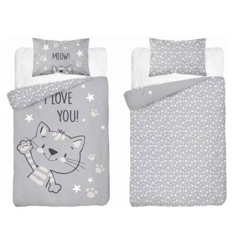 1 kép Maya Moo Gyerek pamut ágyneműhuzat 90x120cm - Cica "I Love You" szürke