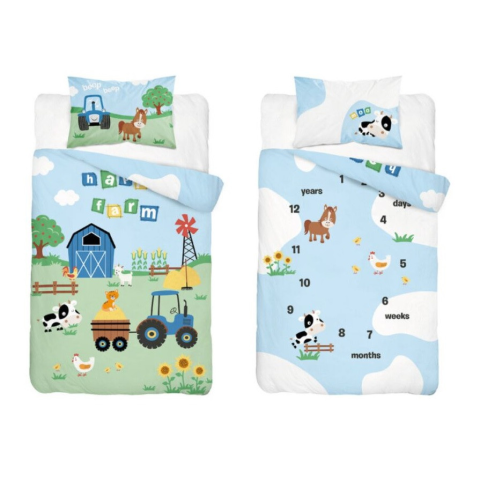 1 kép Maya Moo Gyerek pamut ágyneműhuzat 90x120cm - Farm Kék Traktorral