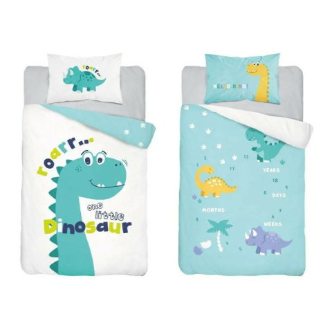 1 kép Maya Moo Gyerek pamut ágyneműhuzat 90x120cm - Hello Dino! Türkiz