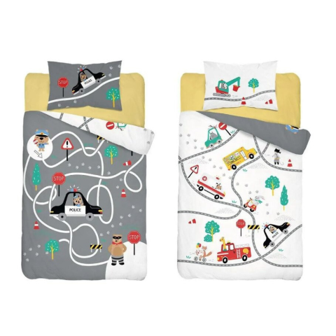 1 kép Maya Moo Gyerek pamut ágyneműhuzat 90x120cm - Police Szürke