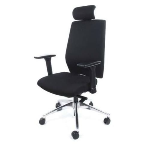 Exkluzív irodai szék. -magas háttámlás -komfortos kialakítás -ergonomikusan formázott ülőlap és háttámla -gázliftes magasságállítás -egy mozdulattal állítható háttámlamagasság -csiszolt alumínium lábcsillag -állítható magasságú és billenthető nyaktámasszal -szeleppel és pumpával állítható deréktámasz -több ponton rögzíthető szinkronmechanika -állítható ülőlap dőlésszög -ülésmélység állítás -állítható magasságú karfával szállítj