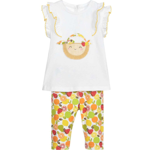 Mayoral fehér, fodros lány póló és gyümölcsös leggings szett – 70 cm