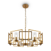 Arany színű fém vázas csillár, négyzet alakú fém dekorral, a foglalatok körül átlátszó üveg búrával, E14-es foglalattal...