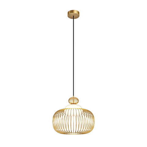 A Levitation lámpa könnyed megjelenésével szinte lebeg a térben. Sárgaréz színű fém váza és üvegbúrája elegáns harmóniát alkot, míg a drótkeret különleges részlete egyedi karaktert ad. Tökéletes választás étkezők vagy nappalik fölé...