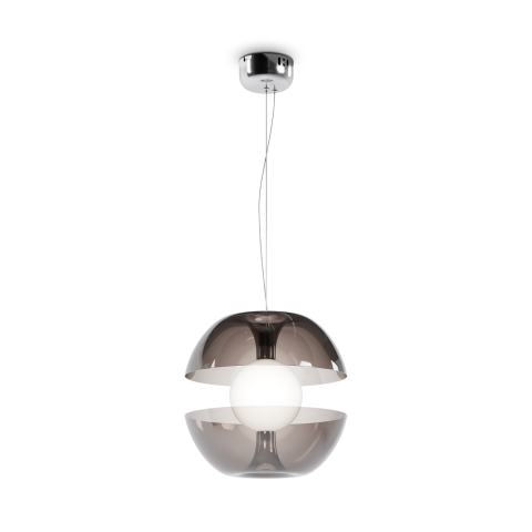 Modern LED függesztett lámpa, középen lebegő hatást keltő füstszínű külső üveg búrával...