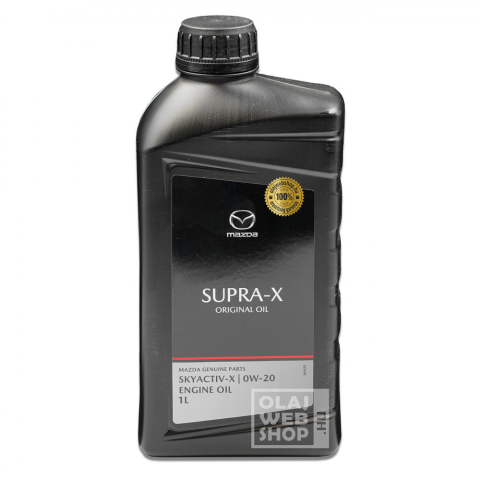 MAZDA Original Oil Supra-X 0W-20 motorolaj SKYACTIV benzinmotorokhoz A MAZDA Original Oil Supra 0W-20 olajat a SKYACTIV benzinmotorokhoz fejlesztették ki. Ez az olaj a legújabb technológiájú szintetikus kenőanyagot használja, csökkenti az üzemanyag-fog