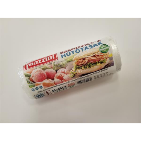 Hűtő- és uzsonnástasak, 100 db, 30x40 cm, 5 l, MAZZINI, átlátszó Ideális élelmiszerek csomagolására, szállítására és hűtőben, vagy mélyhűtőben tárolására. - űrtartalom: 5 l - méret: 30x40 cm - szín: átlátszó - 8 mikron vastag - kiszerelés: 100 d