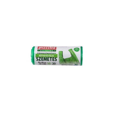 SZEMETESZSÁK KÖTHETŐ FÜLES 35 LITER 20 DB/TEKERCS MAZZINI ZÖLD MAZZINI Újrahasznosított Köthető Füles Szemetes 35L Zöld Háztartási és konyhai hulladék gyűjtésére, tárolására ideális műanyag szemetesek Termékelőnyök és jellemzők: Praktikus fülének
