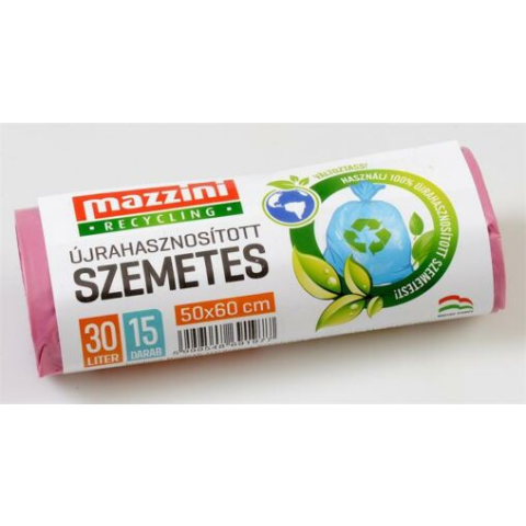 Mazzini Szemeteszsák, újrahasznosított, 30 l, 15 db, 50x60 cm, MAZZINI tisztító- és takarítószer, higiénia termékleírás