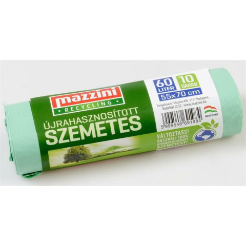Teljes Mazzini Szemeteszsák, újrahasznosított, 60 l, 10 db, 55x70 cm, MAZZINI (KHK903) termékleírás