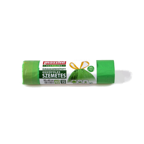 Mazzini Zárószalagos újrahasznosított szemeteszsák 40 l (15 db / tekercs) - Zöld tisztító- és takarítószer, higiénia termékleírás