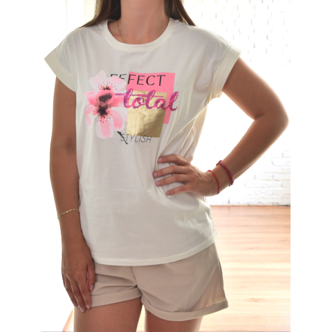 Termék leírás: MB Collection női póló - Fehér, virágmintás design, póló M25-1-WPO-5677/T013. Színe: fehér Ez az MB Collection női póló kiváló választás hétköznapi vagy utcai viseletre. Modern, fehér színű alapon virágminta és píszítő glitter elemekkel díszített, ami kiemeli a stílusos megjelenést. Könnyen kombinálható más ruhadarabokkal.Fedezze fel az MB Collection új női póló kollekcióját! Stílusos, fehér színű, virágmintával díszített póló