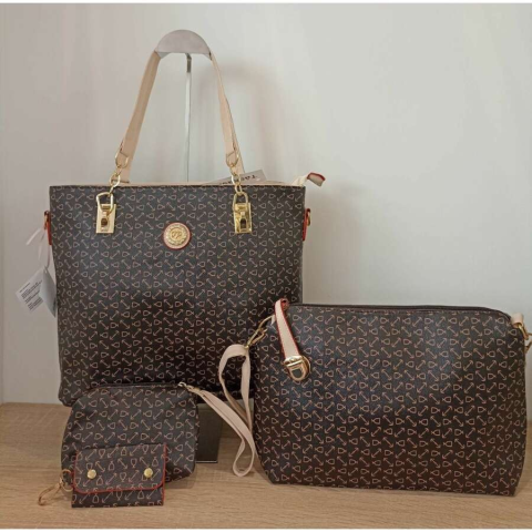 Tedd fel kérdésed a(z) MBC Aprómintás női 3in1 táska szett válltáska, oldaltáska, neszeszer barna aa-001212 termékről!
