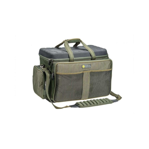 A New Dynasty Carryall közepes méretű változata. A táska elején található nagyméretű zsebbe tökéletesen illeszkedik egy szerelékes doboz. A vízálló, merev alsó és felső részeknek köszönhetően a táskát asztalként is tudjuk használni. A belső fém pálcák további merevséget biztosítanak. A vízálló anyagnak köszönhetően tisztítása egyszerű.