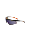 Sportos és modern megjelenésű, ultrakönnyű védőszemüveg. Kék tükrös, karcálló polikarbonát lencsék. Egy darab íves lencse, formázott orrnyereggel. Puha szárvégek és gumírozott orrnyereg a magasabb kényelemért. Szabvány: EN166:2001