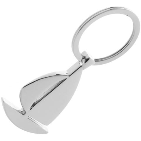 Fényes ezüstszínű fém kulcstartó, dobozban.