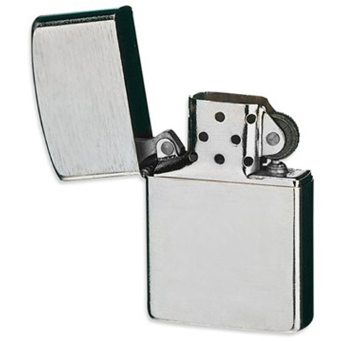 Ezüst színű, vízszintesen szálra húzott kivitelű, mind a két oldalán jól gravírozható "ZIPPO jellegű" öngyújtó.