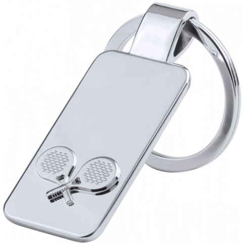 Fényes ezüst színű fém kulcstartó, pingpong motívummal az alján.