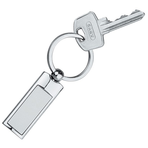 Téglalap alakú kulcstartó. A külső része fényes ezüst színű, a belső gravírozható lap matt ezüst,