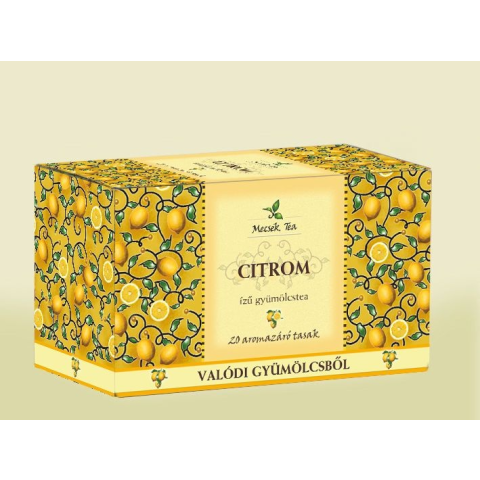 MECSEK Citrom tea filteresCitrom gyümölcstea valódi gyümölcsbõl. Kiszerelés: 40g (20 x 2 g) Leírás: Citrom gyümölcstea valódi gyümölcsből.Elkészítési javaslat: A teafilterre öntsünk 2 dl forró vizet, hagyjuk állni 5-10 percig. Egyéni ízlés szerint íze