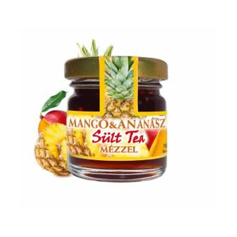Mecsek sült tea mézzel mangó-ananász 40 ml A sült teák alapja egy gyümölcskoncentrátum, ami ízlés és kedv szerint forró, vagy hideg vízzel hígítható. A végeredmény egy igazán gyümölcsös, frissítő ital. Az eljárás során a gyümölcsöket mézzel és kevés cu