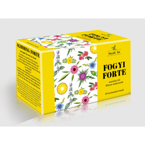 Mecsek fogyi forte tea 20x1,75g 35 g A teakeverék anyagcsere fokozó, méregtelenítő, emésztési zavarokat csökkentő hatású összetevők mellett immunerősítő gyógynövényeket is tartalmaz. Összetevők: kasvirágfű, kutyabenge kéreg, szennalevél, csipkebogyóhús