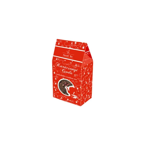 Karácsonyi tematikájú, szálas teakeverék rooibos-szal, amaránttal és mandulával, kakaóhéjjal és szentjánoskenyér darabokkal.