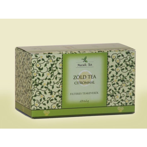 MECSEK Zöld tea citrommal filteresA zöld tea a citrom kellemes aromájával a nap bármely szakában egyensúlyba hozza szervezetünk mûködését, aktivizálja védekezõ erõinket és oldja a mindennapok feszültségét. Kiszerelés: 20 x 2gLeírás: A zöld tea a citrom