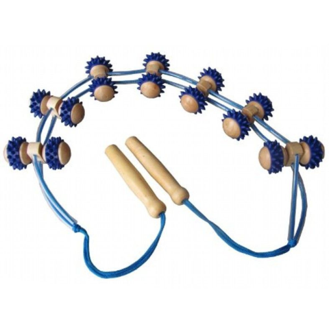 Termék jellemzői:- masszírozó kötél- fa fogantyúk- 115 cm hossú- 8 cm széles- 7 sorban 1 pár görgő- hát és végtag masszírozásra is alkalmas
