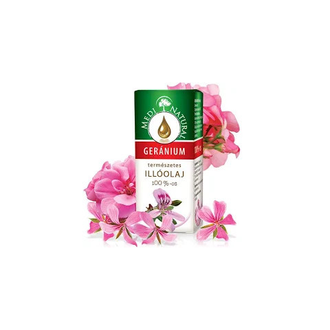 Medinatural geránium 100% illóolaj 10 ml Párologtatásra, masszázshoz, szaunázáshoz, bőrápolásra