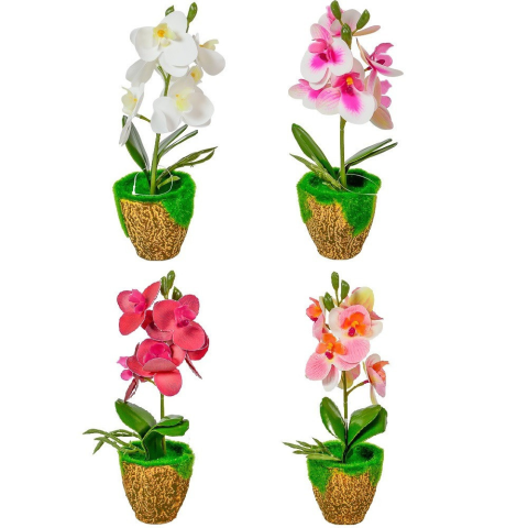 Mű cserepes orchideát, lakás és egyéb dekorációkhoz, ajándékba, ablakba. Magassága: 27 cm Ajánlott technikák: virágkötészet, koszorúkészítés, húsvéti elrendezés, lakás és agyéb dekoráció, kreatív felhasználásra. Az ár 1 darabra vonatkozik. Vigyél egy