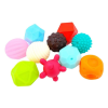 Tarka gumigolyók készlete. A golyók puha és kellemes tapintású anyagból készültek. Minden golyónak más a felülete. A játék fejleszti a gyerekek motorikus készségeit, érzékszervi észlelését, edzi a gondolkodást.