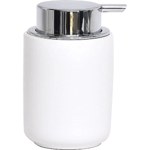 Szappanadagoló, dolomit, fehér, kerek, króm pumpával