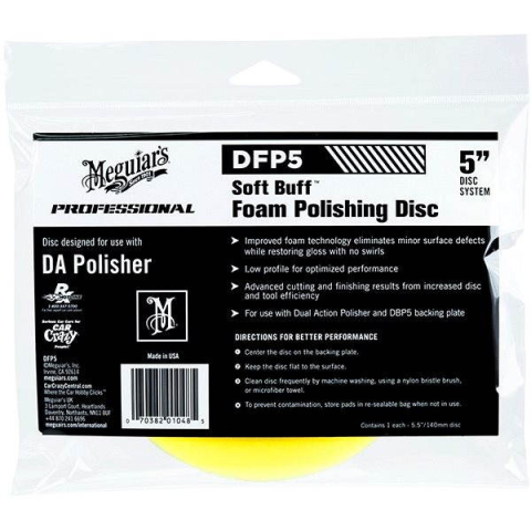 Polírozó korong - hab, orbitális polírozókhoz, alkalmas lakk csiszolásához, közepesen kemény, tépőzáras, tárcsa átmérője 14 cm A minőségi Meguiar's Soft Buff Foam Polishing Disc 5" termék lényeges funkciói Az igényes kialakítású hab anyagú polírozó korong és orbitális polírozó kombinációja fontos eszköz a fényes felület eléré