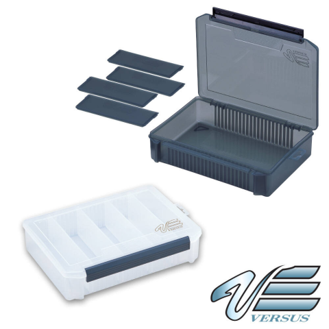 Egyik legnépszerűbb dobozunk a Meiho és Versus választékából. Több különböző vastagságú és belső feloszthatóságú verzióban is kapható. 4db változtatható helyű elosztóval.