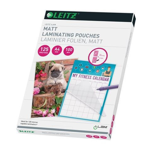 Meleglamináló fólia, 125 mikron, A4, matt, LEITZ iLam (E16926) A matt felület kevésbé tükröződik Könnyen írható felület Lekerekített élek a hatékony záródás és elegáns végeredmény érdekében 100db / csomag Minden típusú laminálógéppel használható 2